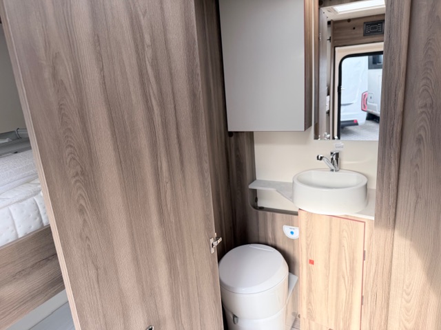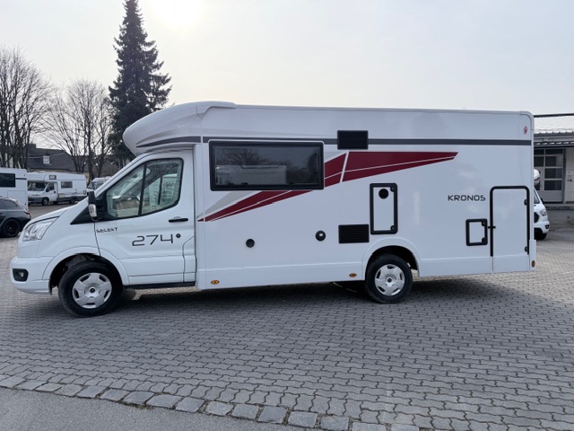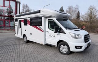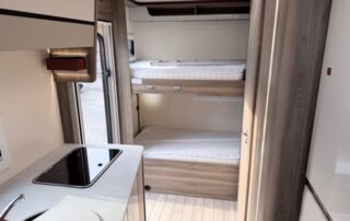 Hinten verfügt der 274TL über 2 Stockbetten 203x86cm (das untere kann zur Vergrößerung der Garage hochgeklappt werden), in der Mitte über ein Hubbett (160 x 200cm) sowie 2 Betten unter dem Hubbett mit 187×68 bzw. 178x68cm Größe. Ein absolutes Highlight ist die Dieselstandheizung sowie das Winterpaket.