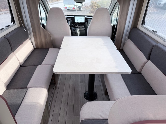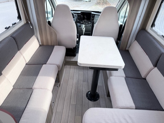 Unglaubliches Raumgefühl bei unserm teilintegrierten RollerTeam Kronos 274 TL Automatik. Ideal für Familien mit vielen Kindern oder Personen die einfach nur „unendlich“ Platz haben möchten. Die „Face to Face“ Anordnung der Bänke erlaubt viel Platz wenn sich das Leben z.B. auf Grund des Wetters mal im Wohnmobil abspielen muss. Der Tisch (verstellbar) kann ausgeklappt werden und vergrößert sich so um 100%.