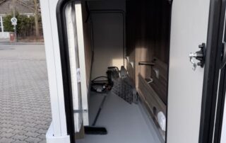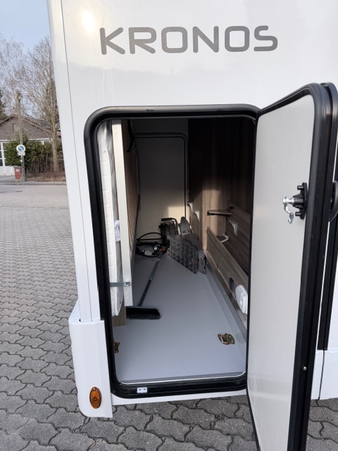 Für einen externen Grill verfügt das Auto über einen Aussengasanschluss und zum sauber machen eine Aussendusche. Damit man sich das wechseln der Gasflaschen erspart, verfügt das Fahrzeug über eine Dieselstandheizung.